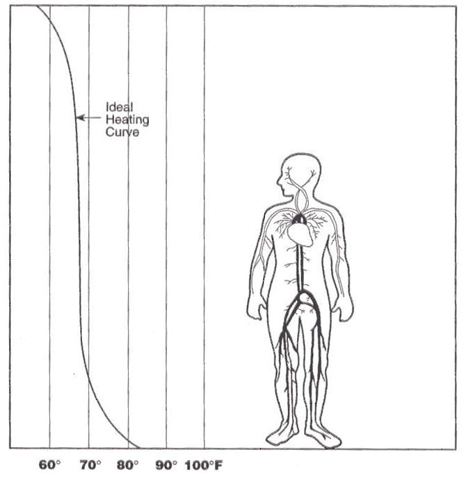 | El calor se acomoda perfectamente a la fisiología del cuerpo humano ya que el calor debe ser mayor en los pies que en la cabeza como lo muestra la figura. | |